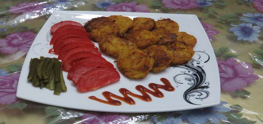 ابتدا سیب زمینی ها را شسته ، پوست می گیریم و سپس رنده میکنیم و آب آن را کاملا می گیریم . سپس پیاز را شسته ، پوست می گیریم و سپس رنده میکنیم و آب آن را کاملا می گیریم و با سیب زمینی و هویج رنده شده مخلوط می کنیم و تخم مرغ ، نمک ، فلفل ، زردچوبه و زعفران مخلوط میکنیم تا یکدست شوند سپس در روغن داغ شده سرخ می کنیم.